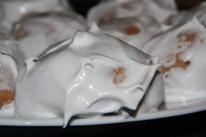 Közben a tojások megmaradt fehérjét gőz felett felverjük a kristálycukorral. Amikor már kemény a hab, kevés esetet és sót teszünk bele, hogy fényes, és tartós anyagot nyerjünk.
