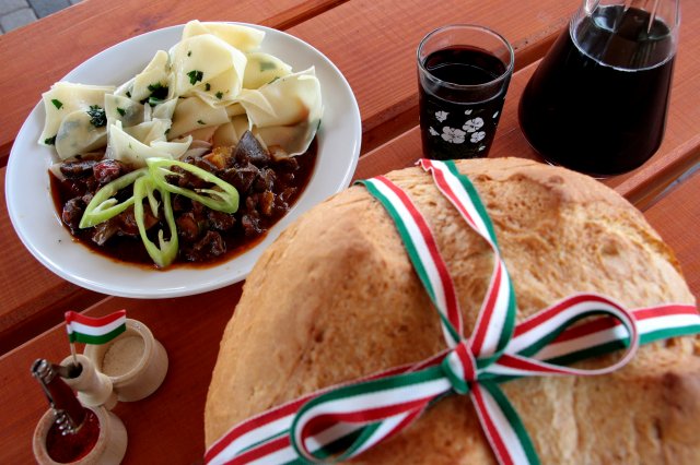 Friss salátát készítünk hozzá. A zöld leveleket átmossuk, kisebb darabokra vágjuk, az uborkát felkockázzuk. Az ízesítőket egy deci vízben összekeverjük, ezzel átforgatjuk a salátánkat. Természetesen más összetevőkből is elkészíthetjük, ami éppen a ház körül megtalálható.