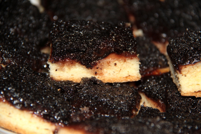 A kalácsokat kisebb darabokra vágjuk.