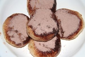 Hozzávalók: 50 dkg liszt, 3 dl tej, 2 dkg élesztő, 2 evőkanál cukor, 2 evőkanál zsír, csipetnyi só. A tetejére fahéjas, vagy kakaós porcukor.