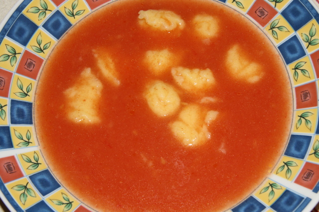 Hozzávalók: (9 főre) 60 dkg füstölt kolbász, 30 dkg füstölt szalonna, 2 tojásból gyúrt lebbencs tészta, 60 dkg burgonya, 9 tojás, 2 fej vöröshagyma, só, 1 evőkanál őrölt paprika, 1 csokor zeller zöld.