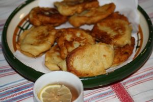 Hozzávalók: 40 dkg krumpli, só, 1 tojás, 2 nagy marék liszt. A sütéshez sertészsír.