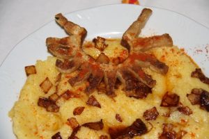 Hozzávalók: 2,5 dl kukoricadara, 7,5 dl víz, 2 gerezd fokhagyma, 1 teáskanál só, 1 nagy fej vöröshagyma, 1 kávéskanál őrölt paprika, 1 szelet füstölt szalonna, 1 púpos fakanál sertészsír.