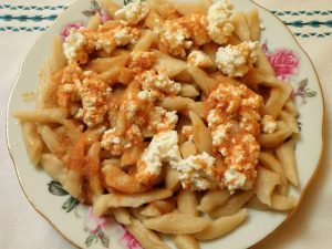 A zlicsnakához a tészta másik felét átgyúrjuk, és késsel nudli nagyságú darabokra szaggatjuk. Forró vízben kifőzzük, majd hideg, sós vízben átöblítjük. Leszűrjük, és a tányéron megszórjuk túróval. A vajat a tejföllel szép pirosra sütjük, és ezzel locsoljuk meg a tésztát.