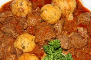 Marhapörkölt zsemlegombóccal