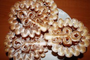 Hozzávalók: kb. 1 kg liszt, 10 db tojás, 1 liter tej, 1 evőkanál porcukor, a sütéshez 1 liter étolaj, és egy púpos evőkanál sertészsír. A tetejére porcukor.