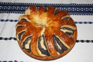 Hozzávalók: 1 kg liszt, 4 tojás sárgája, 10 dkg cukor, 10 dkg vaj, 5 dkg élesztő, csipetnyi só, 4 dl tej. A töltelékhez: 20 dkg darált mák, 12 dkg porcukor, 5 dkg mazsola, 1 (bio) citrom reszelt héja, 2 dl tejföl, 5 db kajszibarack (vagy más gyümölcs). A kalácsok kenéséhez 1 tojás.