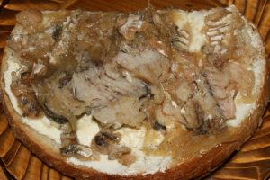 A lábosból szűrőkanálba szedve a felesleges olajat lecsepegtethetjük, és úgy kenhetjük vajas kenyérre, esetleg pirítósra. Az állaga olyan lesz, mint a pástétomnak, a szálkák pedig a lassú főzés, és hosszas tárolás során eltűnnek. Utólag ízlés szerint csepegtethetünk rá citromlevet, tehetünk rá csípős paprikakrémet, vagy fűszernövényeket.