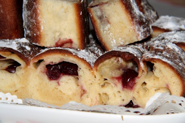 Olajjal meglocsoljuk, négy oldalát a közepéig felhajtjuk, majd a hosszabbik szélére túrós tölteléket halmozunk. Ezt megrakjuk sárgadinnye darabkákkal, és abrosz segítségével feltekerjük.