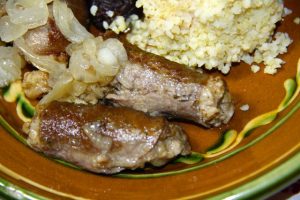Hozzávalók: 30 kis szelet marha fehérpecsenye, só, 2 dl étolaj a sütéshez, 50 dkg vöröshagyma, 1 fakanál sertészsír, 1 kávéskanál majoránna. Töltelék: 1 kg darált sertéshús, 4 szelet szikkadt kenyér, 2 tojás, 2 vöröshagyma, só, őrölt feketebors. Kása: 1 kg köles, 40 dkg aszalt szilva, só, 2 dl étolaj, 2 evőkanál cukor, 1 kávéskanál őrölt fahéj, vörösbor, 10 szem szegfűszeg.