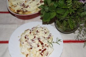 Hozzávalók: 50 dkg túró, 1 liter tejföl, 30 dkg sonka, 5 dkg zsír, só, 25 dkg liszt, 3 tojás.