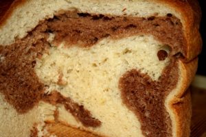 A megkelt élesztős tejet a lisztbe öntjük, hozzáadjuk a 42 szem édesítővel elkevert tejet, és az egészet alaposan kidagasztjuk. Közben kevés étolajat is hozzádolgozunk. A tészta kétharmad részét lisztezett gyúrótáblára borítjuk, a maradékba pedig beledagasztjuk a 12 szem édesítővel elkevert kakaót. Ehhez is adunk egy kevés olajat.