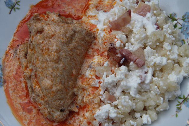 Amikor kisült, a visszamaradt, fűszeres zsírban kisütjük a krumplit, amit utólag enyhén megsózunk.