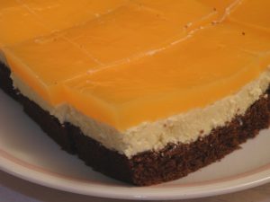 Hozzávalók: 6 tojás, 6 evőkanál cukor, 1 dl étolaj, 4 púpos evőkanál liszt, 2 evőkanál kakaó, 1 sütőpor. A krémhez: 25 dkg margarin, 20 dkg porcukor, 25 dkg túró, 2 vaníliás cukor. A tetejére: 7 dl szénsavas narancs (vagy bármilyen más ízű) üdítő, 2 csomag vaníliás pudingpor.