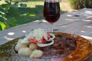 Legutoljára a vörösbort öntjük bele. Ízlés szerint sózzuk, ha szükséges, fűszerezzük és fél óra múlva tálalhatjuk.