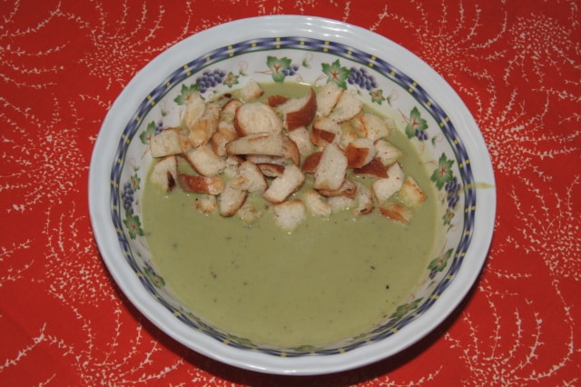 A levest kis tálkákban, lehűtve, zöldfűszer levélkékkel díszítve kínáljuk.