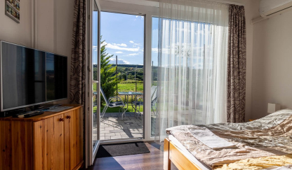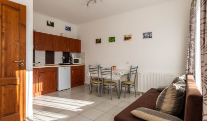 Az újépítésű, két szintes szálláshely, négy, teljesen felszerelt, igényes kialakítású, tágas, világos apartmannal várja vendégeit. A földszinten 2 apartman került kialakításra, az egyik 2 férőhelyes és zuhanyzós fürdőszobával rendelkezik, a másikban pedig 2+2 fő elszállásolására van lehetőség és fürdőkádas fürdőszobával rendelkezik. Az emeleten szintén 2 apartman található. Mindegyik 2+2 férőhelyes és zuhanyzós fürdőszobával ellátott. Az apartmanok mindegyike klimatizált, valamint saját konyhával és fürdőszobával rendelkezik. A szépen füvesített udvaron élvezhetik a vendégek a környék friss levegőjét. Díjmentes, térkövezett parkolóval várják az autóval érkező vendégeket.