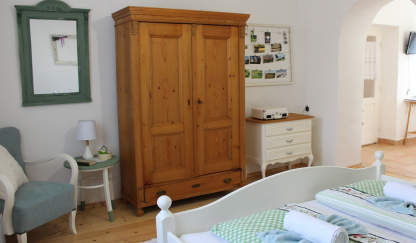 A vendégház egy régi parasztház, berendezésében meghatározóak a régi falusi életet idéző bútorok, a modern ízlésnek és a vidéki bájnak megfelelően felújítva. A hálószobában egy franciaágy, a nappaliban egy kinyitható kanapé és étkezőasztal négy székkel található. A konyha jól felszerelt. A fürdőszobában zuhanyzó és mosógép is található. A ház műholdas tévével és internettel (ingyenes WiFi) felszerelt.