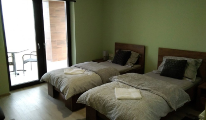 A vendégház 340 négyzetméter, mely 8+2 fő kényelmes befogadására alkalmas. A központi eleme a közösségi térként funkcionáló, hatalmas – 61 négyzetméter – nappali, melyhez üvegajtóval elválasztott terasz kapcsolódik. Mindehhez egy közös használatú, jól felszerelt gépesített konyha társul. Szállásunk négy darab szobával rendelkezik, melyek közül kettő franciaágyas, kettő pedig egy-egy darab különálló ággyal van berendezve. Minden szobához saját tv, terasz és fürdőszoba tartozik. A nap fáradalmainak levezetésére pedig az ingyen igénybe vehető, beltéri wellness részleg áll rendelkezésre fényterápiás jacuzzival, valamint három férőhelyes infraszaunaával. Szálláshelyünk minden helyisége klimatizált és internet hozzáféréssel ellátott.