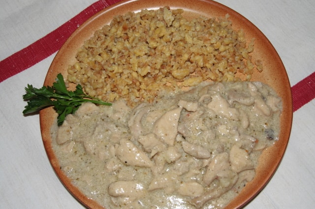 Közben a tejfölből és lisztből habarást készítünk, és amikor a hús megpuhult, besűrítjük vele.