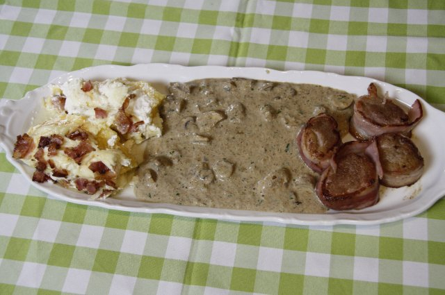 Mikor minden puhára főtt, egy evőkanál mustárral és a borral ízesítve összeforraljuk, majd friss kenyérrel, és házi savanyúsággal tálaljuk.