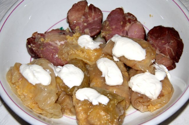 Hozzávalók: 16 levél savanyú káposzta, 20 dkg kukoricadara, 20 dkg füstölt szalonna, 40 dkg füstölt sonka, 2 vöröshagyma, 1 kávéskanál só, 2 kávéskanál őrölt feketebors, 3 evőkanál sertészsír.