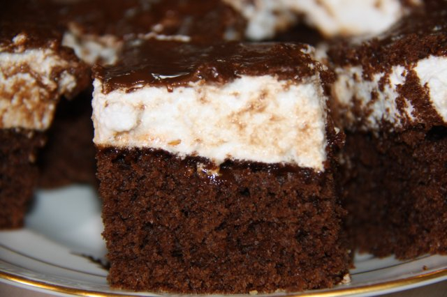 Hozzávalók: 5 tojás sárgája, 25 dkg porcukor, 12,5 dkg margarin, 25 dkg liszt, 1 sütőpor, 3 evőkanál kakaó, 2,5 dl tej, 3 dl baracklekvár. A habhoz: 5 tojás fehérje, 25 dkg porcukor. A mázhoz: 10 dkg étcsokoládé, 2 evőkanál étolaj (olíva olaj). A tepsihez: 1 evőkanál zsír, 1 evőkanál liszt.
