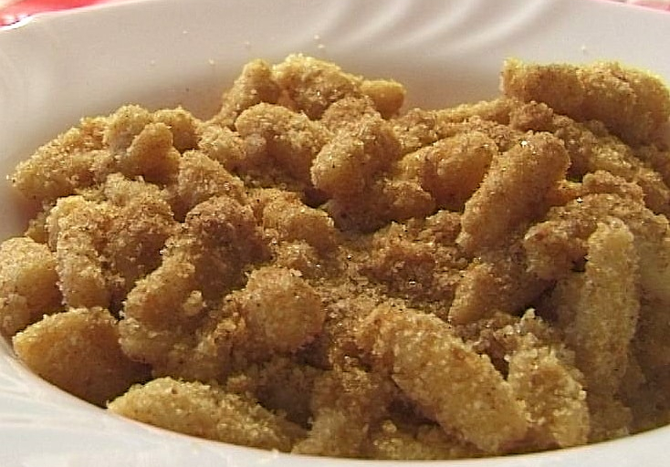 Vizet forralunk, kevés sót hintünk bele, és ebben főzzük ki kisebb adagokban a tésztát. Szűrőkanállal kiszedjük, leöblítjük, kevés olvasztott zsírral meglocsoljuk, majd pirított zsemlemorzsával összekeverjük. Fahéjas cukorral ízlés szerint megszórjuk. Mákkal, vagy cukor nélkül is fogyaszthatjuk.