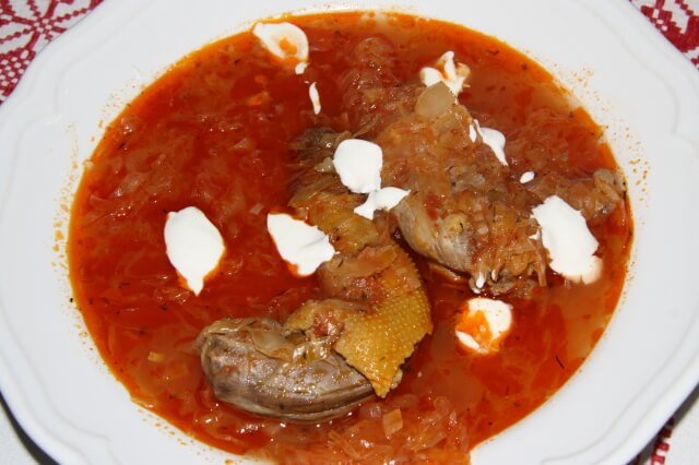 Hozzávalók: 1 egész kacsa, 1,5 kg savanyú káposzta, 2 babérlevél, 3 kicsi paradicsom, 2 teáskanál só, 2 teáskanál borsikafű. A rántáshoz: 3 evőkanál folyós kacsazsír, 2 evőkanál liszt, 2 kisebb vöröshagyma, 1 teáskanál őrölt kömény, 5 teáskanál őrölt paprika, 1 liter paradicsomlé.