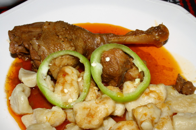 Liba pörkölt szőlőfejes tésztával