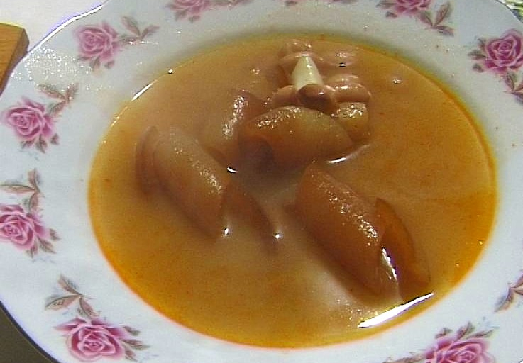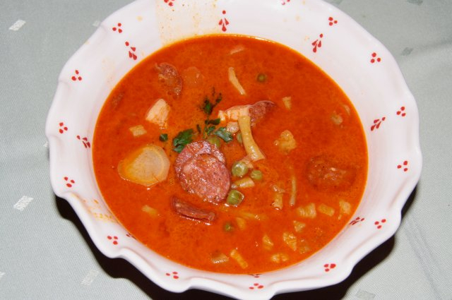 Tálalás előtt két evőkanál ecettel kicsit savanykás ízt adhatunk a levesnek.