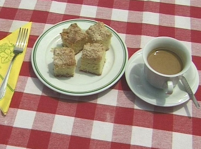 Hozzávalók: 20 dkg porcukor, 2 tojás, két dl tejföl, 20 dkg liszt, késhegynyi szódabikarbóna. A tetejére cukros darált dió. A tepsi előkészítéséhez sertészsír, kevés liszt.