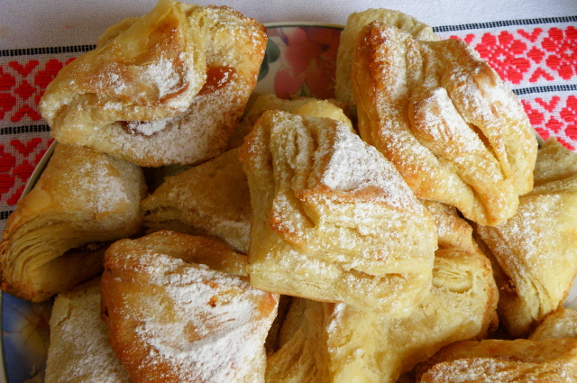 Hozzávalók: 3 marék liszt, só, 2 kanál sertészsír, egy nagyobb fürt édes szőlő, 50 dkg túró, 2 evőkanál cukor, 1 evőkanál tejföl.
