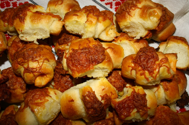 Hozzávalók: a kovászhoz: 2 dl tej, 1 dl víz, 2 kockacukor (vagy 2 teáskanál kristálycukor), 2 dkg élesztő, 30 dkg liszt. A tésztához: további 30 dkg liszt, 1 kávéskanál só, 10 dkg vaj, a tetejére 1 felvert tojás. A habarékhoz: 1 dl víz, 1 kávéskanál só, 1-2 evőkanál liszt.