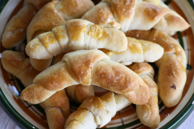 Lisztezett deszkán négyfelé vágjuk, és cipókat formázunk belőle. Egyenként kerekre kisodorjuk, olvasztott zsírral átkenjük, és enyhén megsózzuk. Cikkekre vágjuk, mint a tortát, és ezeket feltekerve kifliket formázunk belőle.