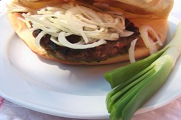 A húsokat, és 40 dkg hagymát megdarálunk. Sózzuk, borsozzuk, és alaposan átgyúrjuk. Gombócokat, majd hússzeleteket formázunk belőle. Legjobb a sütés előtti napon elkészíteni, akkor másnapra jól összeáll. Faszén parázson mindkét oldalukon alaposan átsütjük.