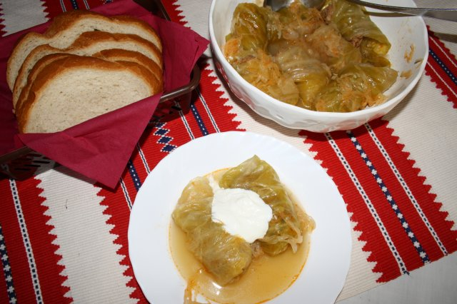 Hozzávalók: 1 kg dagadó, vagy sertés lapocka, 1 vöröshagyma, 6 gerezd fokhagyma, 12 dkg gersli (árpagyöngy), 1 teáskanál őrölt feketebors, 1 evőkanál só, 1 teáskanál őrölt paprika, 3 teáskanál paprikakrém, 1 kávéskanál őrölt szegfűbors, 2 teáskanál majoránna, 50 dkg savanyú káposzta, 1 kg savanyú káposzta levél. A tálaláshoz tejföl.