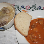 Baconba tekert szűzérmék erdei gombamártással, juhtúrós puliszkával