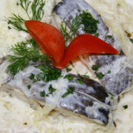 Törpeharcsa tárcsán, krumplifasírttal, gombamártással