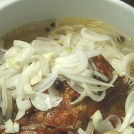 Vicsege fehérboros lecsóval, fokhagymás galuskával