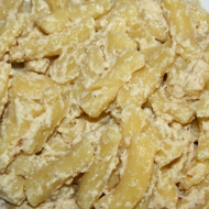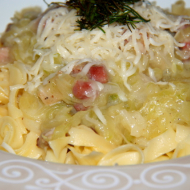 Lencsés-gombás kakaspörkölt medvehagymás nokedlivel